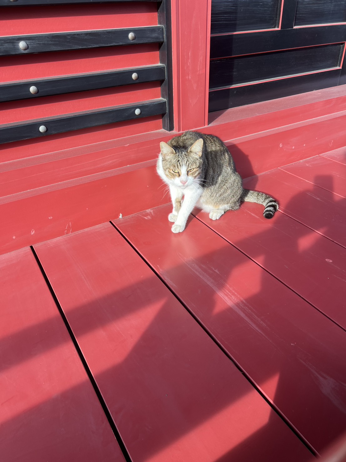 境内では猫ちゃんにも出会いました♪のんびりした様子に、私たちも癒されました。
