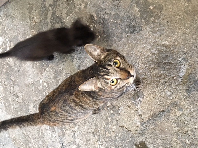 頑張れよ!飯代稼いで来いよ!(猫ににらまれる)
